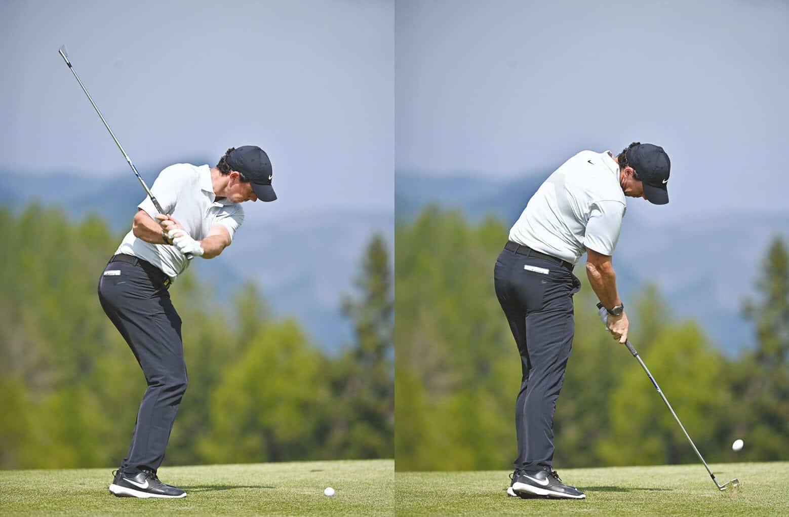 One of Rory’s most striking swing traits is his seamless transition from backswing to down swing. This moment of change, often a struggle for many golfers, is where Rory shines. His transition reflects control and fluidity, allowing his body and club to work in harmony ashe accelerates through the ball. For those looking to improve their irons, mastering thisphase is critical.