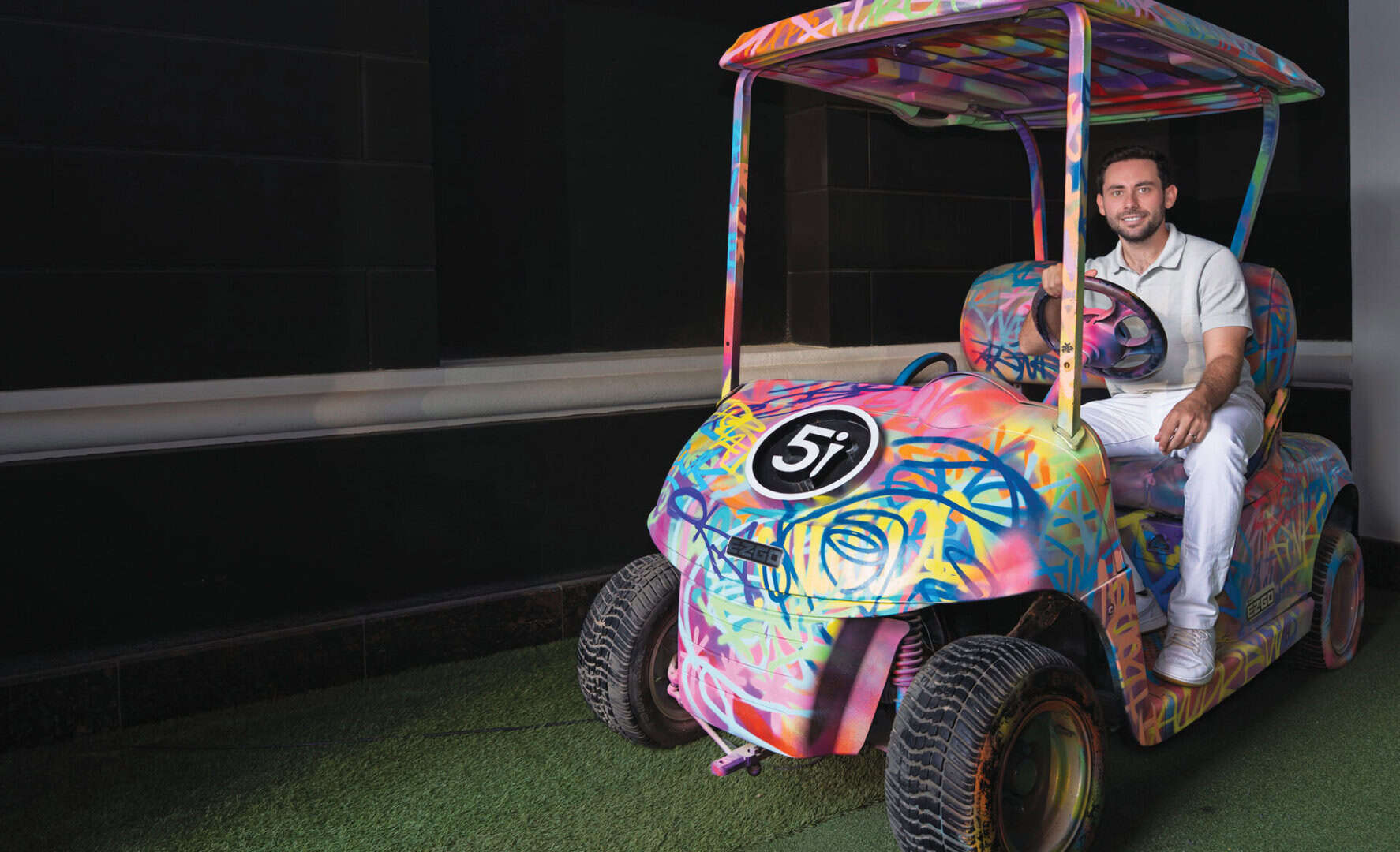 He picked up a club at two, started competing at five, and now, having not yet blown out the candles of his 30th birthday cake, he’s co-owner of Five Iron Golf Dubai with his brother-in-law David Zabinsky.